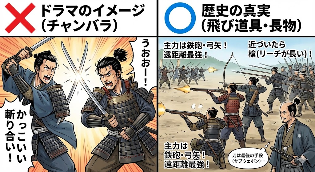 はじめに 日本の歴史ドラマや映画のクライマックス。 武士たちが「うおおー!」と叫びながら、日本刀を抜いて敵陣に突っ込み、激しいチャンバラ(白兵戦)を繰り広げる……。 最高にかっこいいシーンですよね。 しかし、もし戦国時代の武士がその映像を見た... 実は、『驚き』