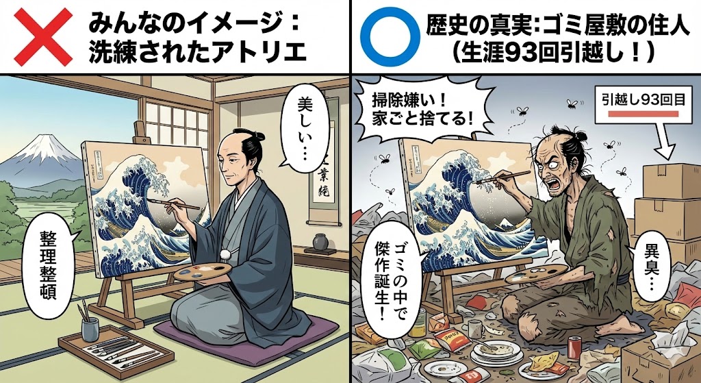 実は、葛飾北斎は「ゴミ屋敷」の住人だった!掃除が嫌いで生涯93回も引っ越した天才の奇行
