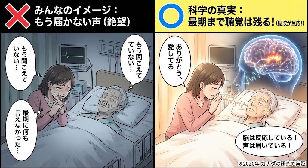 はじめに 大切な人が旅立つ時。病室のベッドで意識を失い、呼びかけにも応じなくなった姿を前にすると、私たちは深い無力感に襲われます。「もう、私の声は届かないのだろうか」と絶望を感じることもあるでしょう。 しかし、諦める必要はありません。たと... 実は、『衝撃』