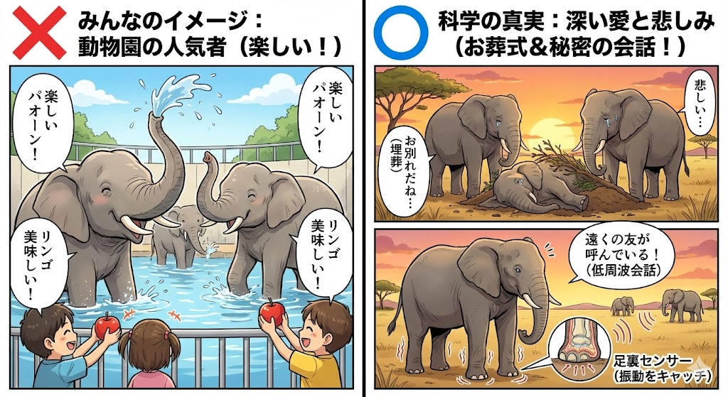 はじめに 「動物に心はあるのか?」 この問いに対する、最も美しい答えを持っているのが「ゾウ」です。 彼らは、ジャングルやサバンナで、人間顔負けの「深い愛情」を見せます。 特に有名なのが、大切な仲間が旅立った時の行動です。 ゾウたちは、動かなく... 実は、『深い』
