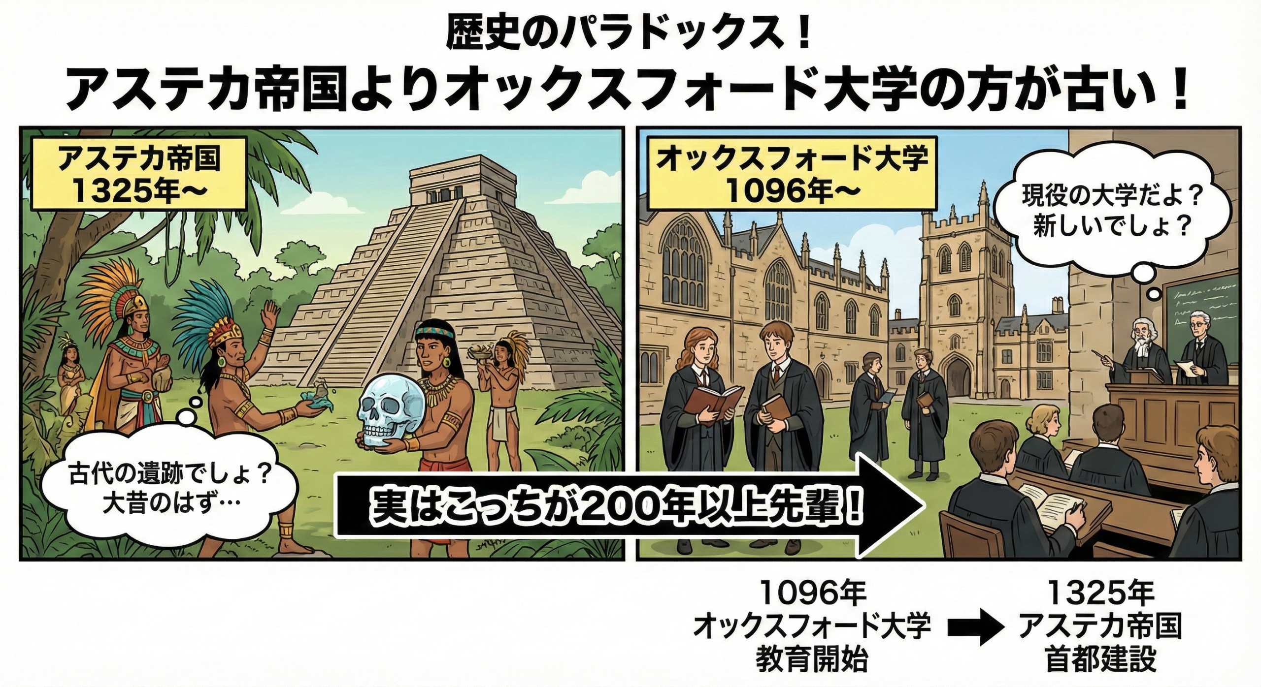 実は、オックスフォード大学の方が、アステカ帝国よりも「200年以上」も歴史が古いのです。