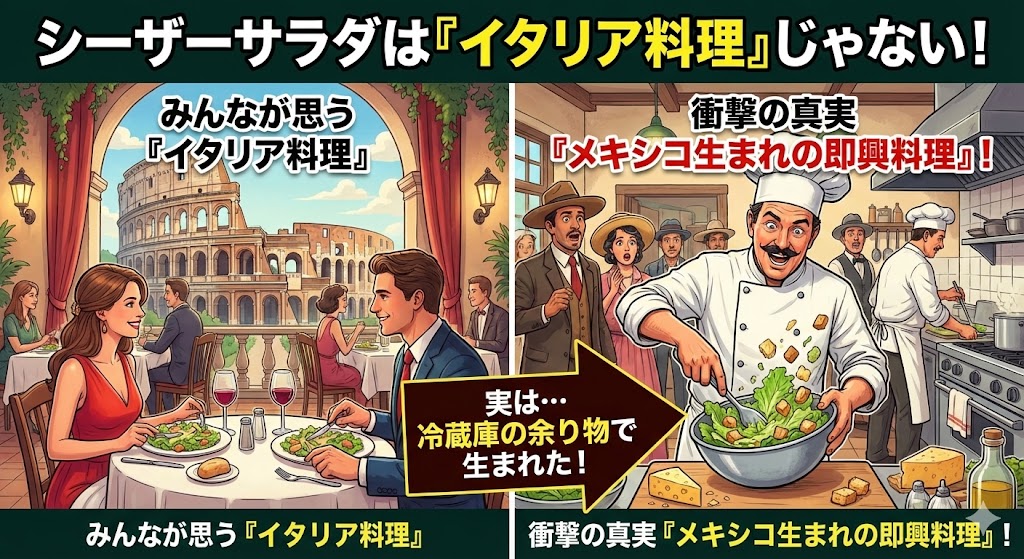 実は、シーザーサラダは「ローマ皇帝」と無関係!メキシコのホテルで「食材切れ」から生まれた奇跡の料理