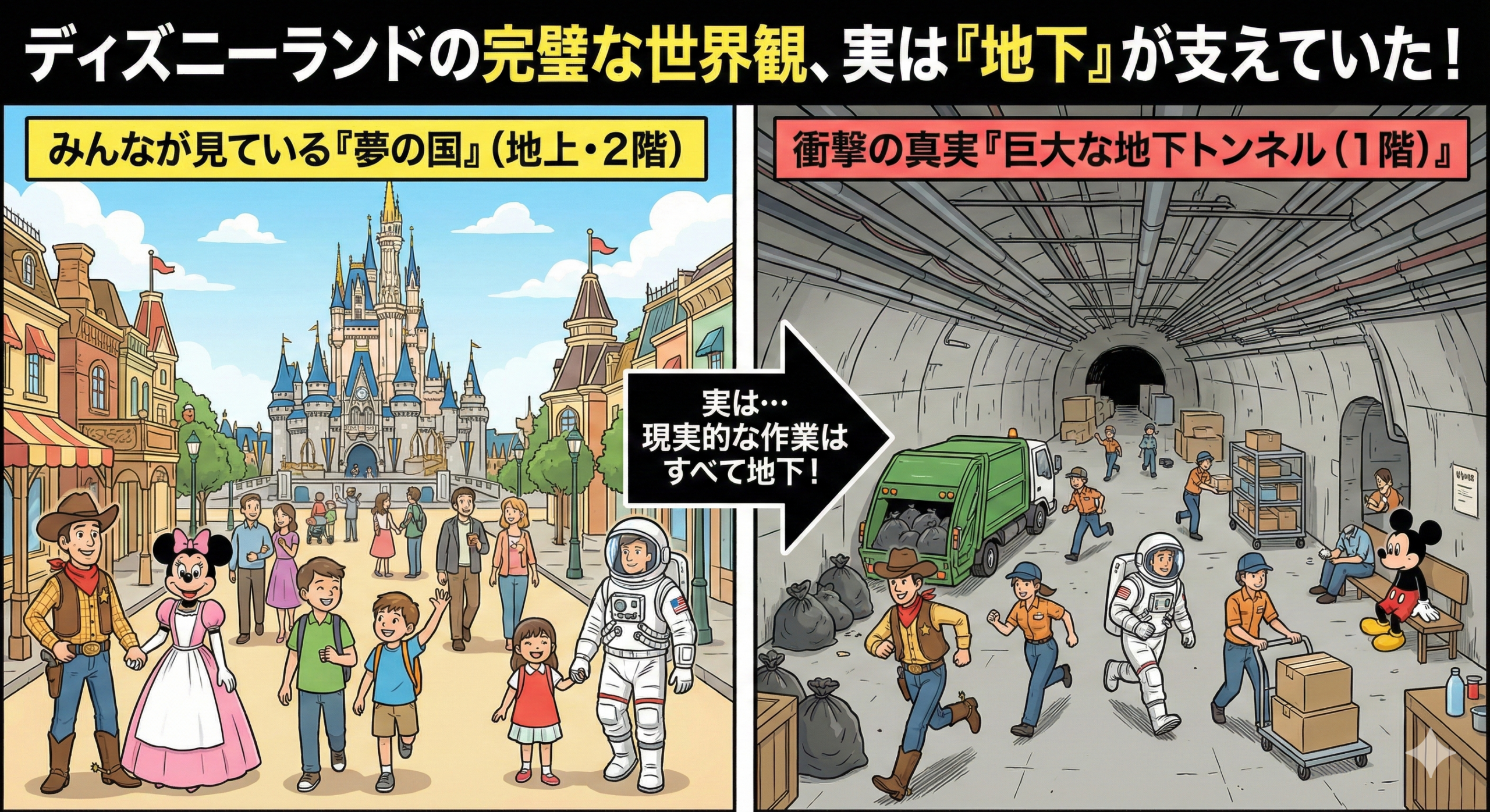 夢の国の完璧な世界観。 それは、「現実的な作業はすべて地下に隠す」という、執念に近い徹底的な構造によって守られていたのです。