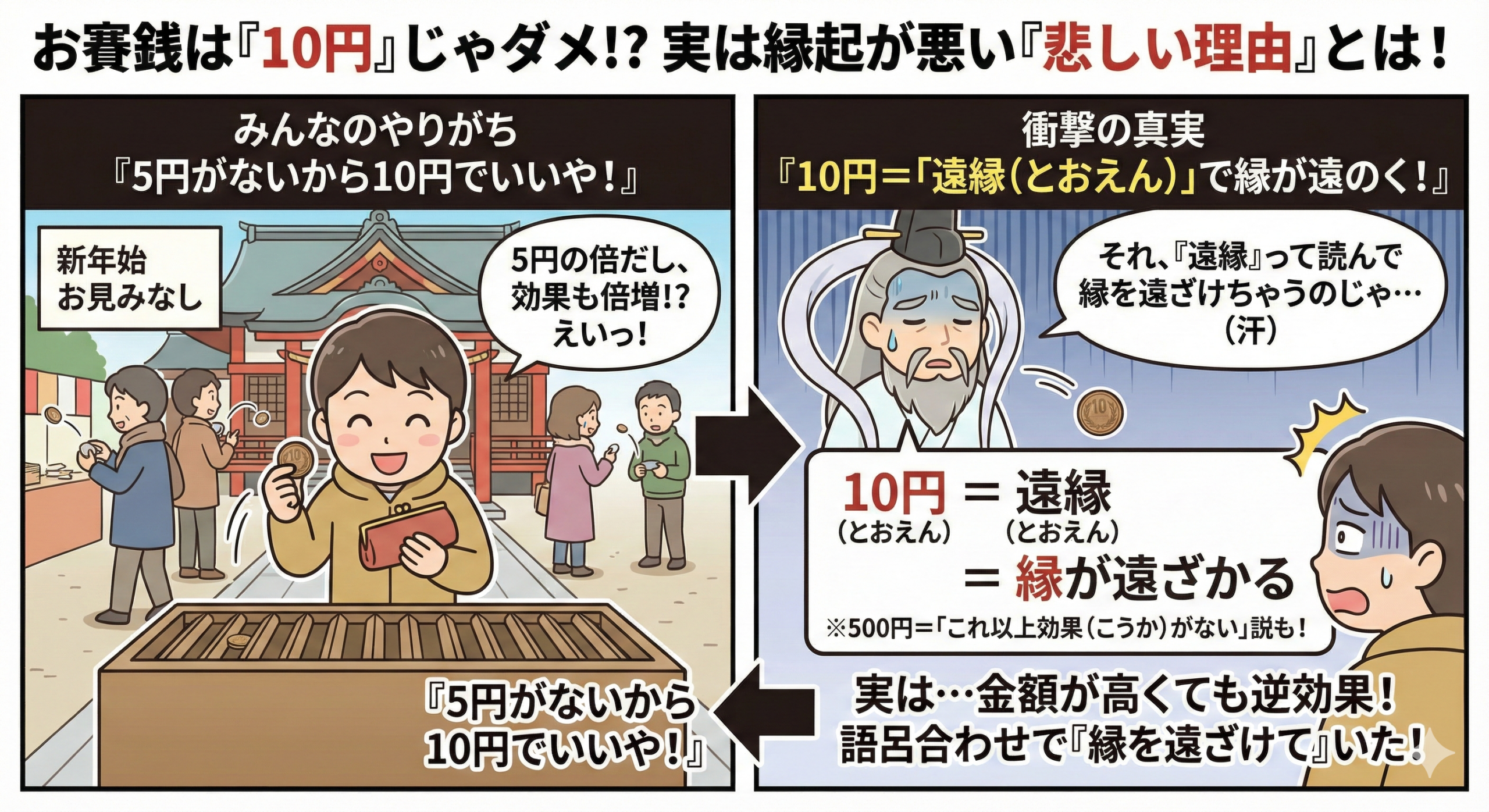 「実は、お賽銭に10円玉を使うのは、縁起が悪いので避けたほうがいい」 と言われています。 金額は高いのに、なぜダメなのでしょうか?