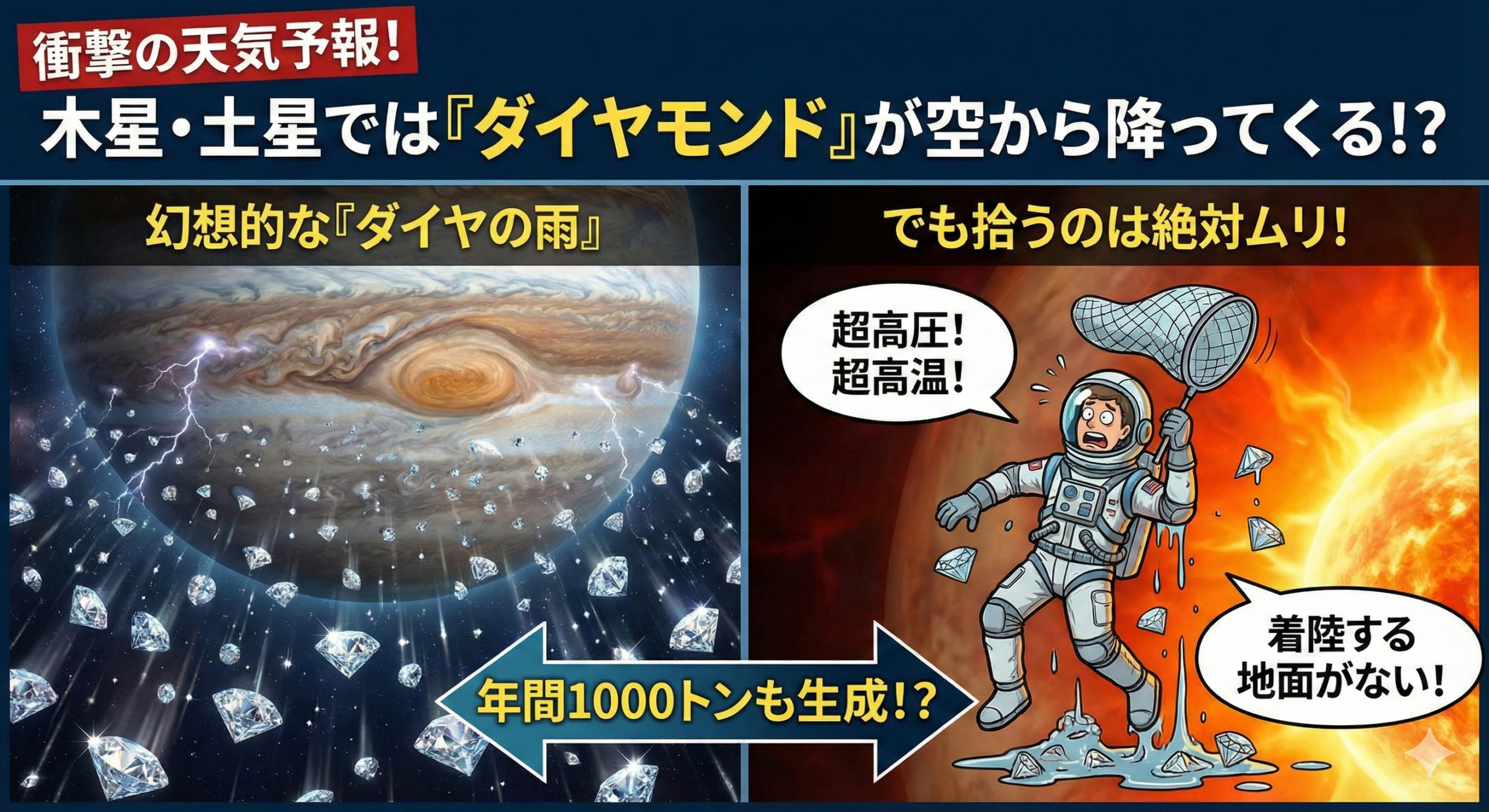 木星や土星では、空からザラザラと「ダイヤモンド」が降っている可能性が高いのです。