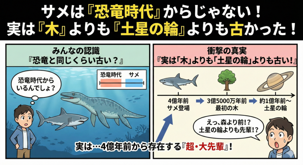 実は、サメは「木」よりも先輩。恐竜よりもずっと前から地球にいた