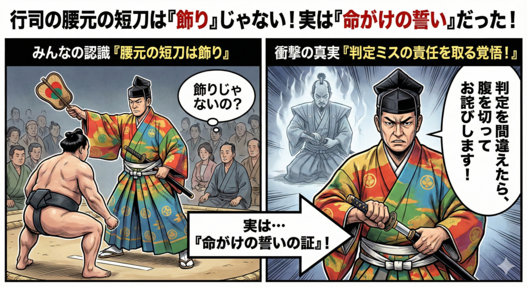 実は、大相撲の行司は「差し違えたら切腹する覚悟」で短刀を持っている