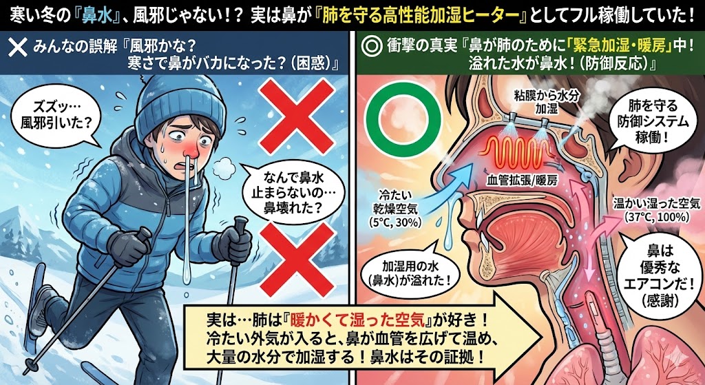 実は、寒いと鼻水が出るのは「風邪」じゃない!肺を守るために鼻が「高性能加湿器」になっていた