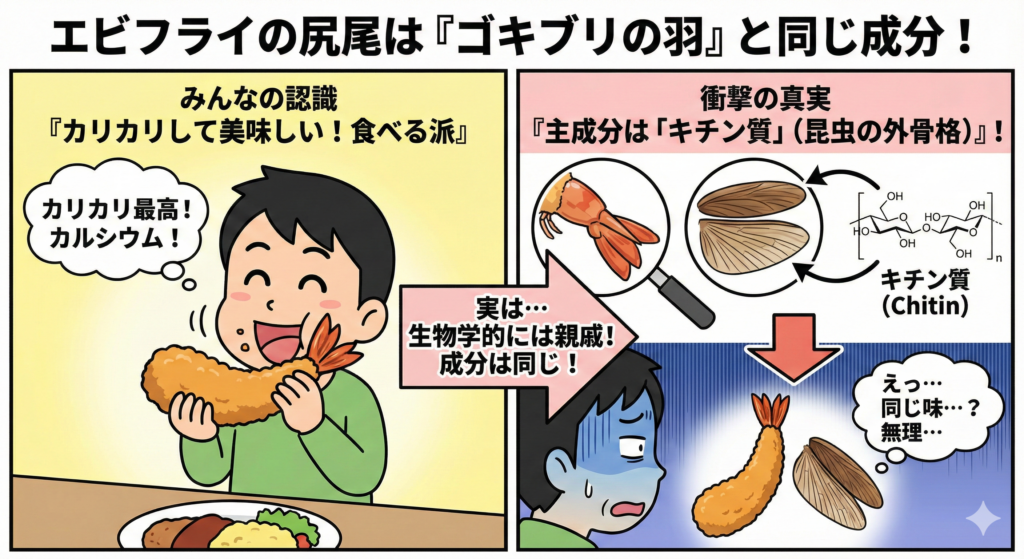実は、エビの尻尾の成分は「ゴキブリの羽」と同じ