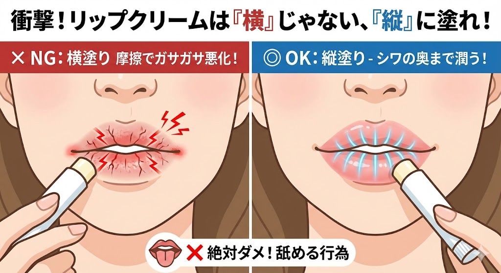 実は、リップクリームは「横」に塗っちゃダメ!「縦」に塗らないと逆に唇がガサガサになる理由