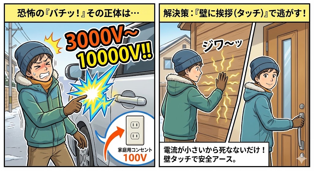 実は、静電気の「バチッ」は3000ボルト以上!コンセントの30倍もあるのに「痛っ!」で終わる理由と、一瞬で帯電を消す裏技