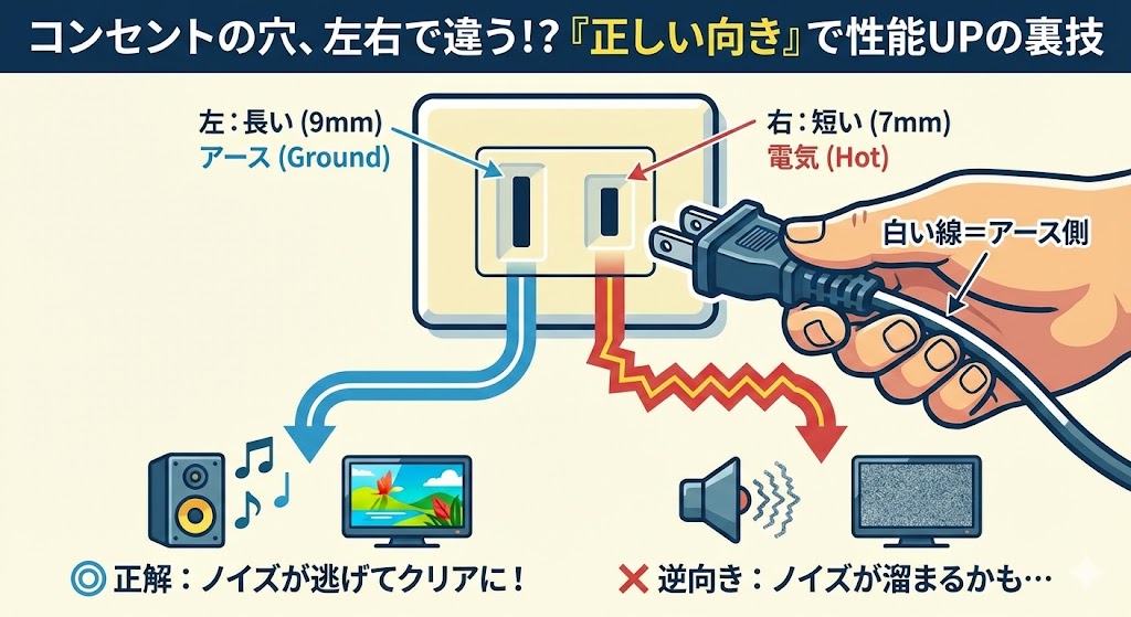 実は、コンセントの穴は「左右で大きさが違う」!正しい向きで挿すとテレビやオーディオの性能が上がるって本当?
