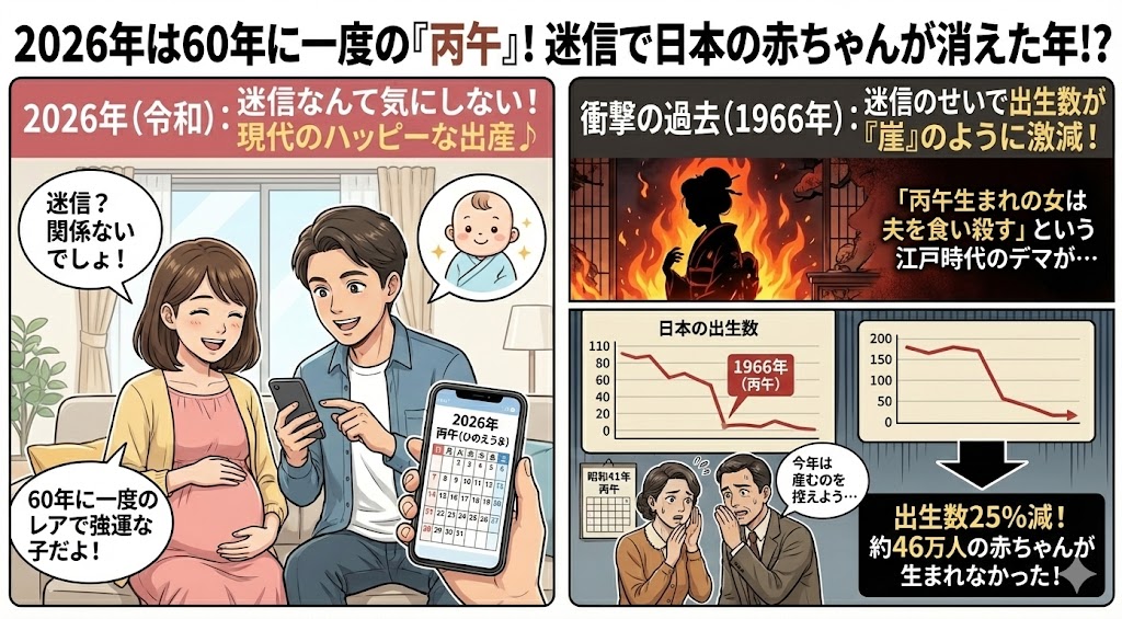 実は、今年(2026年)は60年に一度の「恐れられた年」!?出生数が激減する「丙午(ひのえうま)」の迷信とは