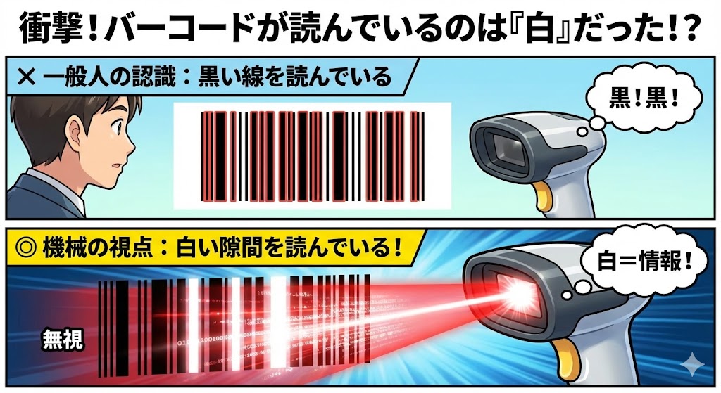 実は、バーコードリーダーは「黒い線」を読んでいない!機械が見ていたのは「白い隙間」の方だった