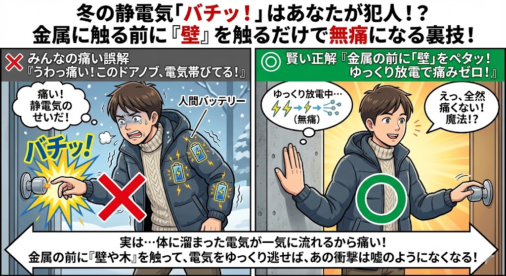 実は、静電気で「バチッ!」となるのは、あなたが“電気ウナギ”化しているから!?ドアノブに触る前に「壁」を触るだけで解決する理由